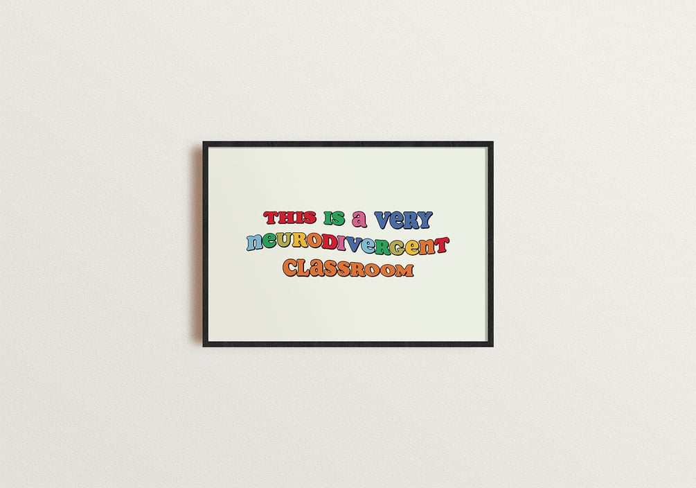 You will receive a set of high resolution (300dpi) A4 (297mm x 210mm) printable JPEG and PDF files in CMYK for "Neurodivergent Household", "Neurodivergent Studio" and "Neurodivergent Classroom". The design is landscape orientation so be sure to change your printer settings to print landscape.